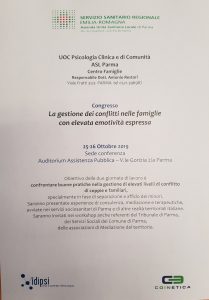 Congresso: "La gestione dei conflitti nelle famiglie con elevata emotività espressa" 25-26 Ottobre 2019 Sede conferenza Auditorium Assistenza Pubblica – V.le Gorizia 2/a Parma Programma Congresso e scheda d'iscrizione